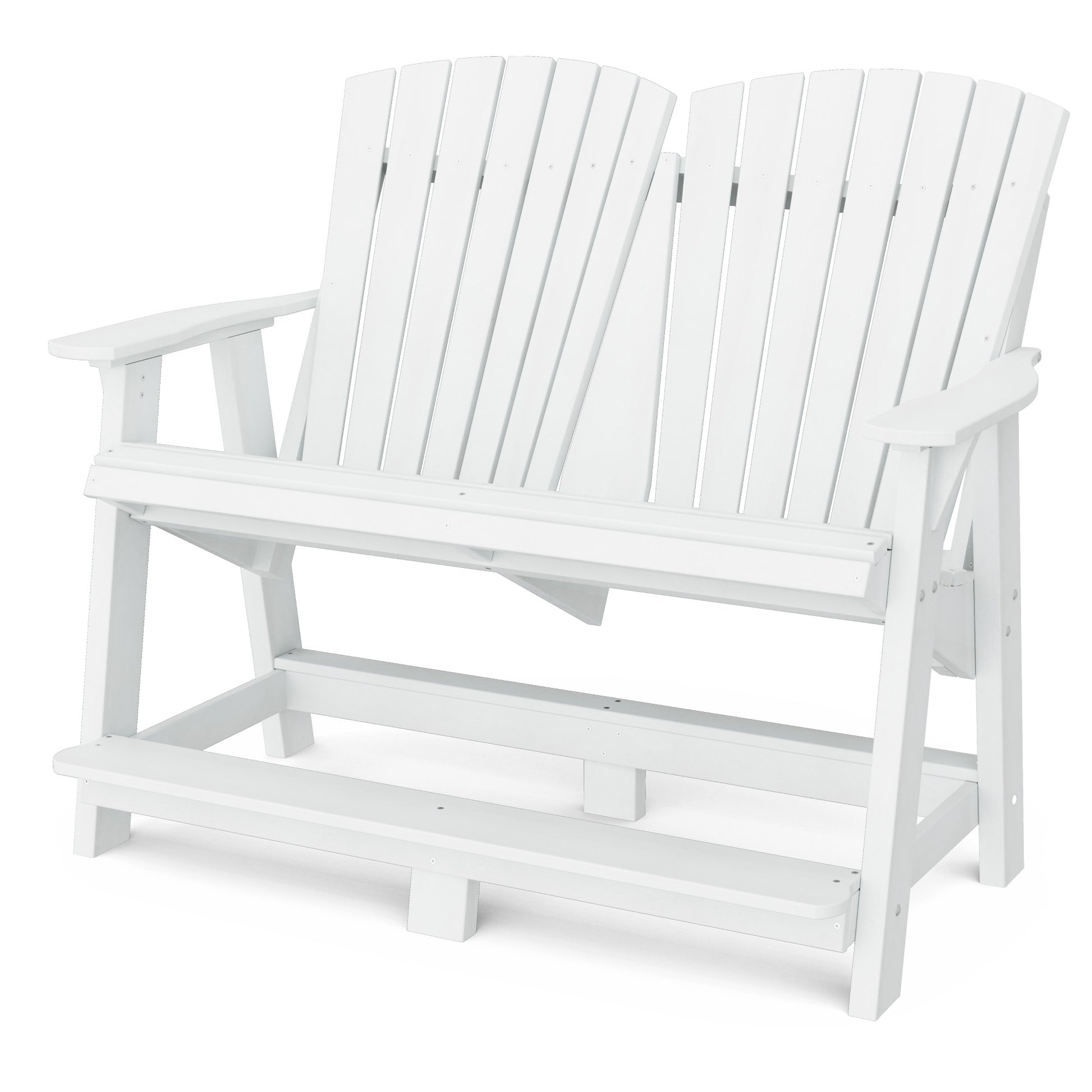Take your relaxation to new heights with this double Adirondack, featuring comfortable contours and a supportive footrest.